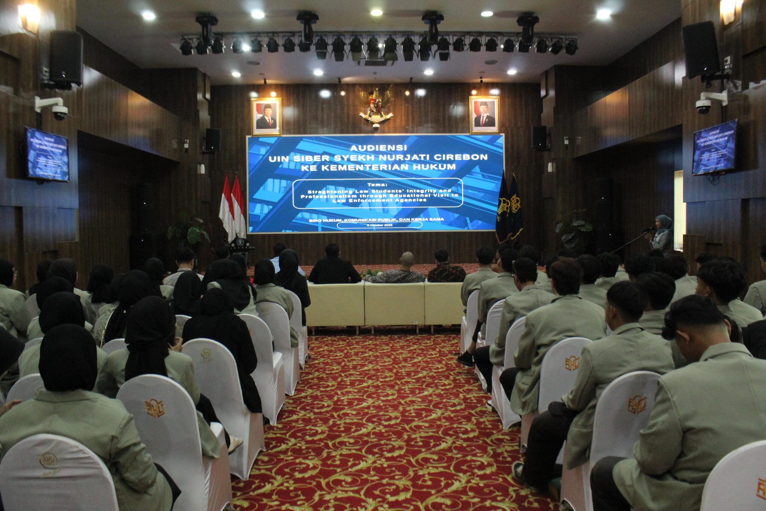 Kamis 9 Oktober 2025, Himpunan Mahasiswa Jurusan Hukum Keluarga (HMJ-HK) bersama peserta Mahasiswa/I Jurusan Hukum Keluarga Fakultas Syariah Universitas Islam Negeri Syekh Nurjati Cirebon (UINSSC) melaksanakan kegiatan Study Explore. Pertama ke Kementerian Hukum (Kemenkum) dan yang kedua ke Mahkamah Konstitusi (MK) Indonesia.